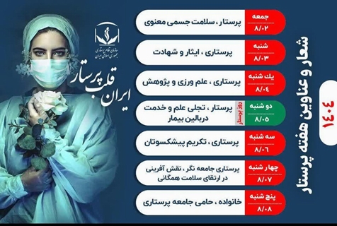 با عرض تبریک میلاد با سعادت حضرت زینب سلام الله علیها و روز پرستار شعار و عناوین برنامه‌های هفته پرستار